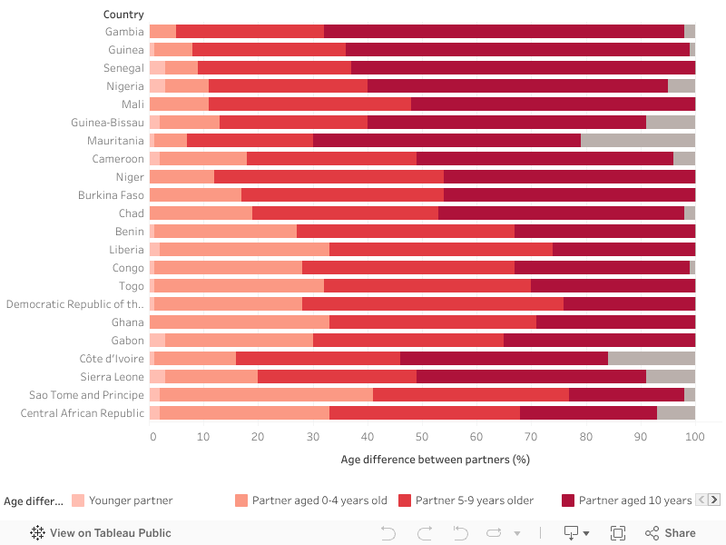 In some African countries where child marriages are more serious, more than 50% of 15-19-year-old girls say that their husbands are more than 10 years older than them. In Gambia, Guinea and Senegal, this ratio reaches 2/3.